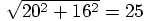 is more than 25 in our units, as you can see by applying Pythagoras to the