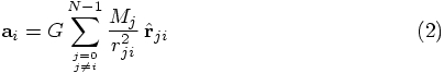 vector of particle j, and G is the gravitational constant.