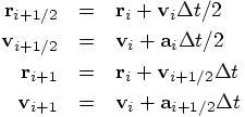 Alice: You are right. So the two methods are really different then. Good to know. Still, let us see how different they are. The corresponding equation for the leapfrog is: