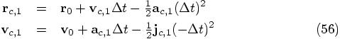 but just shifted by one unit in time. Note that our last step has really been an interpolation step, since we are now using the acceleration and jerk values at both ends of the step. In contrast, during the extrapolation step, we used information based on the last two accelerations, both of which are gained at the past side of that step.