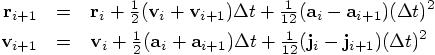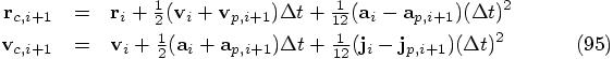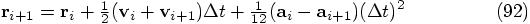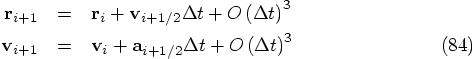 The only thing left to do is to check the expression for the position, the first line in Eq. (83). Let us bring everything to the left-hand side there, except the acceleration terms. In other words, let us split off the leapfrog expression, and see what is left over: