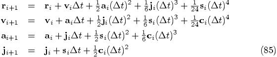 Alice: I see. So it is quite natural to differentiate Newton’s equations of motion just once, and then to use both the acceleration and the jerk, obtained directly from Eqs. (79) and (80). Can you show me what the expressions for the position and velocity look like, in terms of those two quantities?